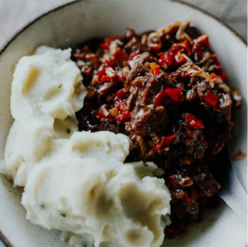 A rustic beef stew with aromatic vegetables, herbs and spices, finished with a densely flavoured dark and silky sauce. Gluten free.