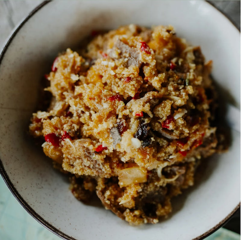 - This meal is light to carry and provides tasty, fast nourishing food for adventure with a tasty combination of freeze dried lamb, pumpkin, raisins and apple served with couscous. No added dairy.