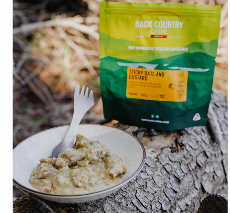 This dessert is light to carry and provides tasty, fast nourishing food for adventure with a good old fashioned family favourite sticky date pudding, freeze dried with custard.