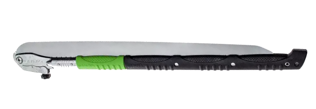 The precision-ground, razor sharp blade has four cutting angles along the length of the blade and provides fast, clean and smooth cutting action. Long well-balanced taper-ground blade with impulse-hardened non-set tooth design provides extended working reach, faster cutting and handling of large limbs and small trunks with no effort.