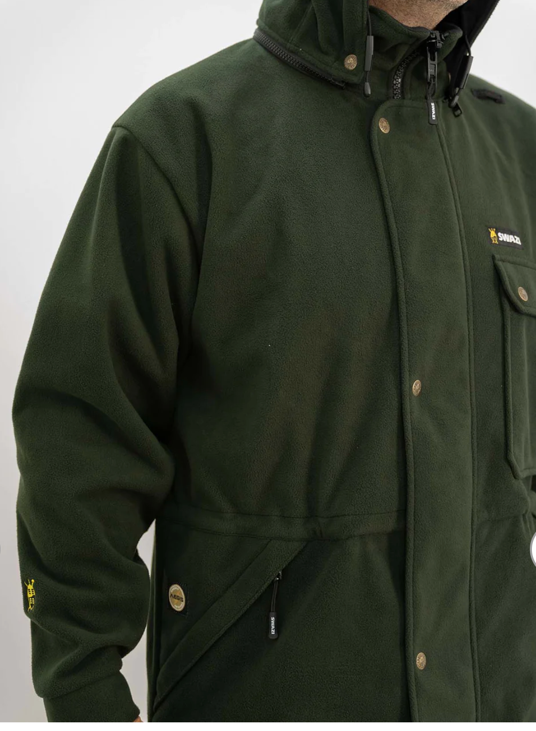 Top opening pocket with large handwarmer pocket on the sides, and of course, the legendary Swazi high periphery vision hood.
