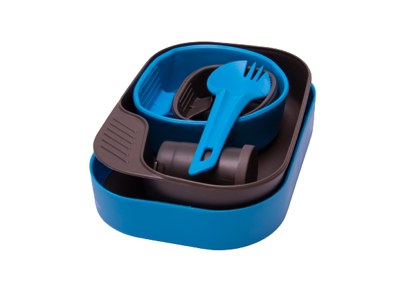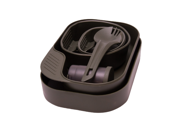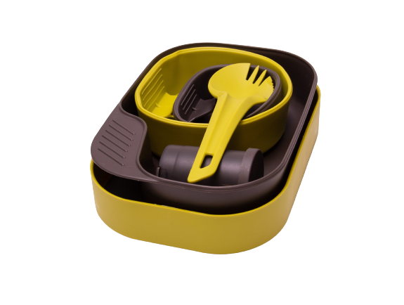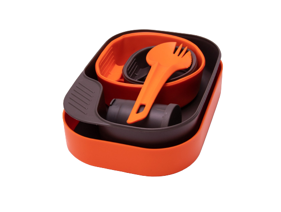 Fully equipped. Includes a plate with lid, Fold-A-Cup® Big, Fold-A-Cup®, Cutting board, Shaker and Spork.